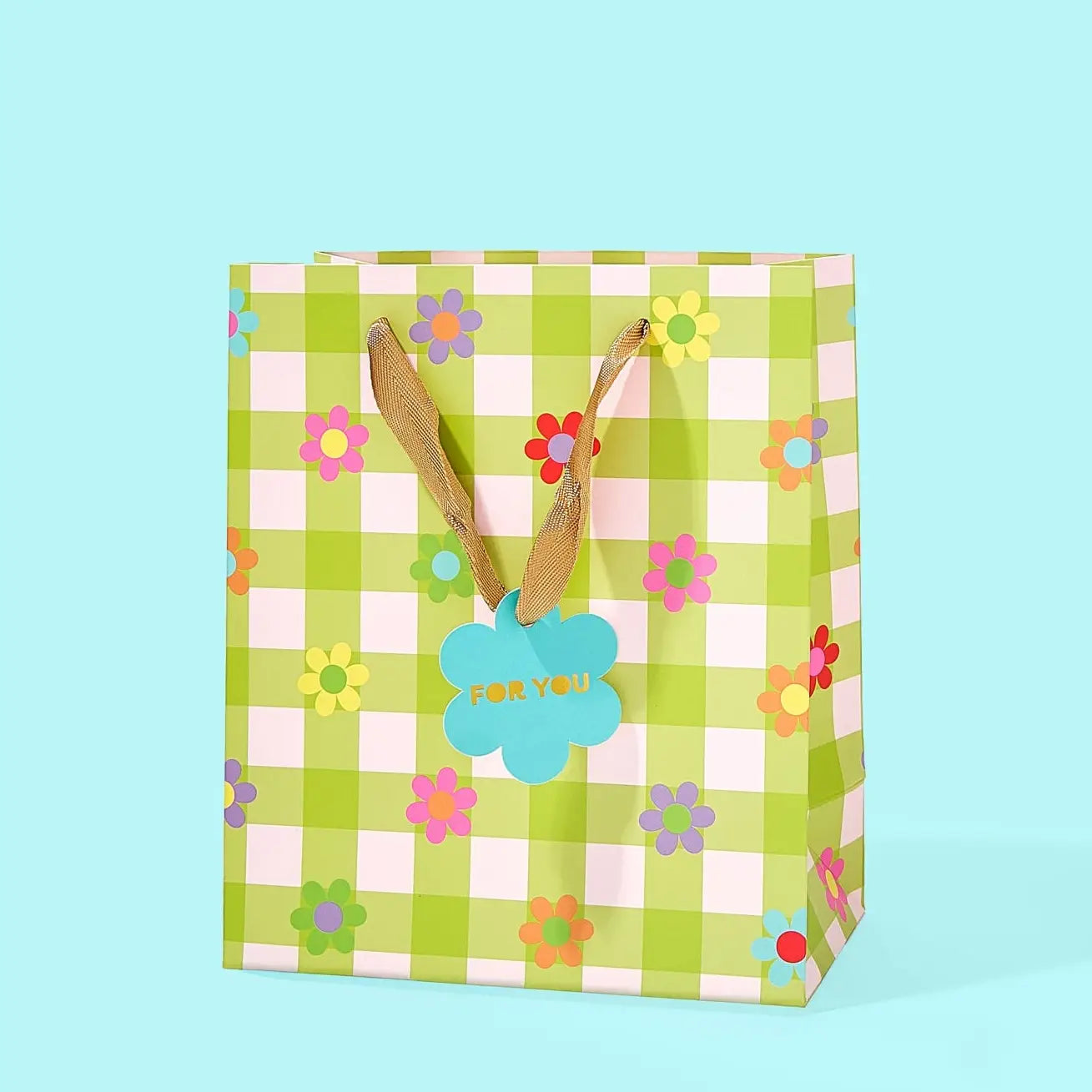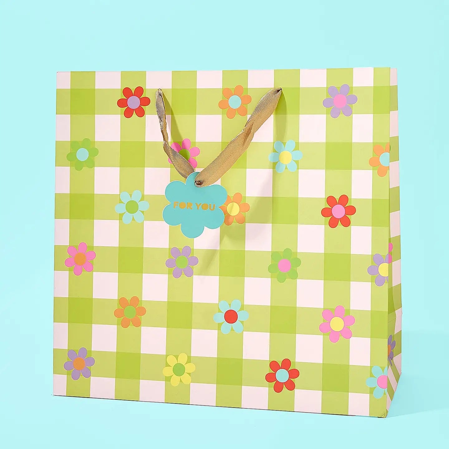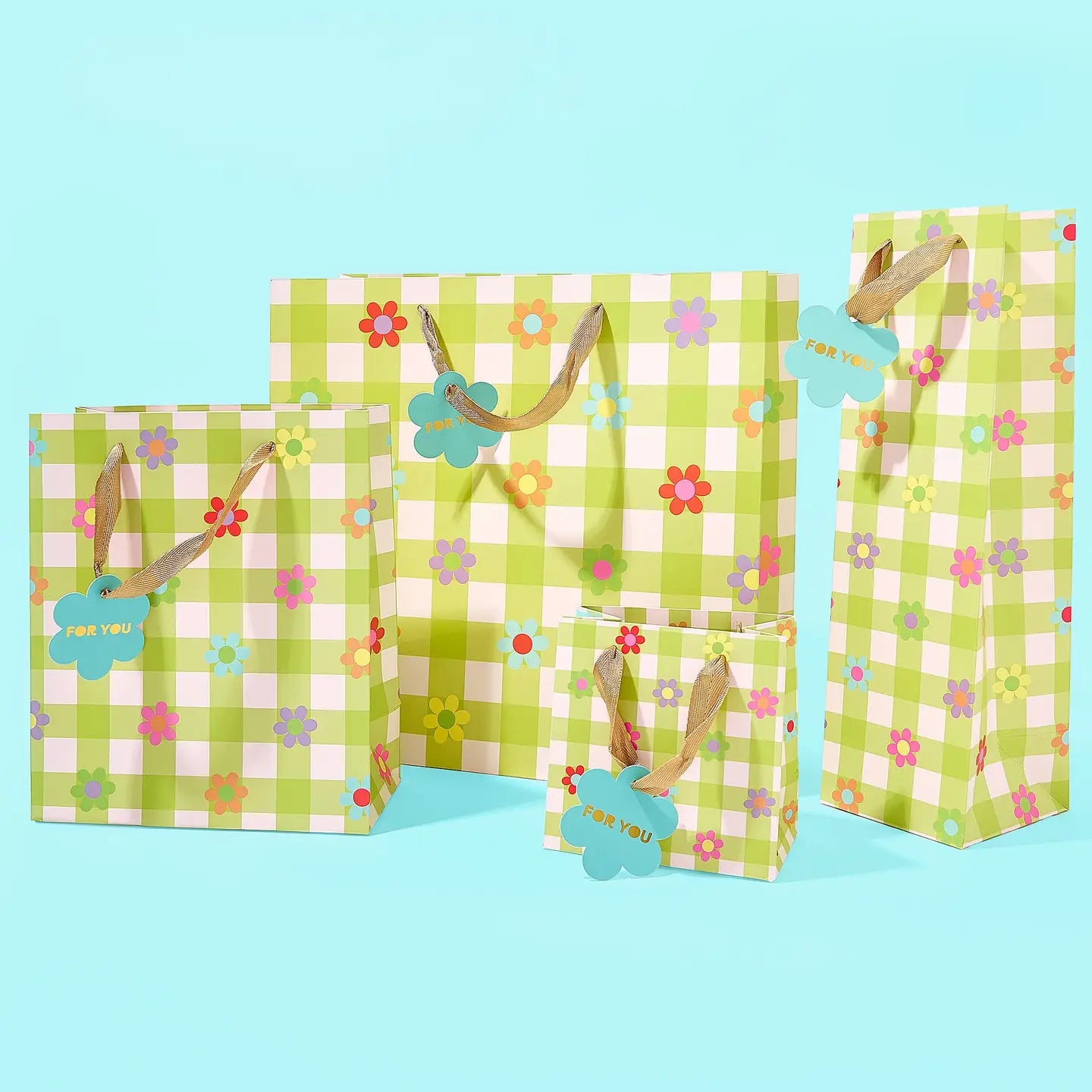 Brighten your customers gift-giving with these playful Gingham Flowers Gift Bags, featuring a charming green gingham and floral pattern. Available in small, medium, large, and wine sizes, they’re perfect for wrapping everything from little surprises to their favorite bottle. Add a touch of fun and style to every present!