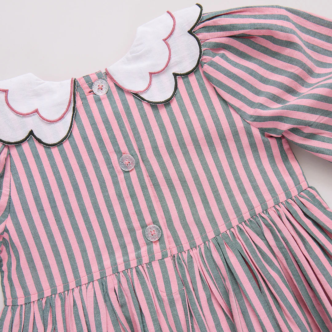 Girls Darcy Green and Pink Striped Dress