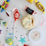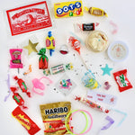 This girl themed bag is hand curated and contains just the right amount of goodies that kids will love and includes an exciting assortment of classic candy, retro inspired toys, gum, temporary tattoos, confetti and a 2 oz small batch sparkle birthday cake scented play dough complete with fake sprinkles by Pauli Dough.