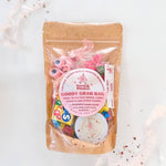 *Each bag will contain a different variety of items, candy and favors, but every bag will include: Gummy bears, a lolli pop, a fortune fish, positive affirmation fortune or silly joke, stickers, bubble gum, a temporary tattoo confetti and small batch Pauli Dough play dough.