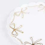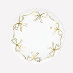 Add flair to your party with these elegant paper plates. The combination of golden bows and a scalloped border is guaranteed to bring effortless sophistication to your table, making every setting shine. Disposable plates have never been this chic and are perfect for the whole family to use. Ideal for Christmas, New Year, golden wedding anniversaries, bridal showers and special birthdays