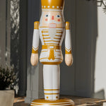 Designed to dazzle. Bring holiday magic to life with our NEW Gold Inflatable Nutcracker! Standing 5 feet tall, this jolly giant is designed to dazzle. Features an innovate design and weighted base that won't blow over when used outdoors. Ideal for both indoor and outdoor use, this weatherproof wonder is built to brave freezing temperatures and spread cheer all season long. Bring on the festive fun!