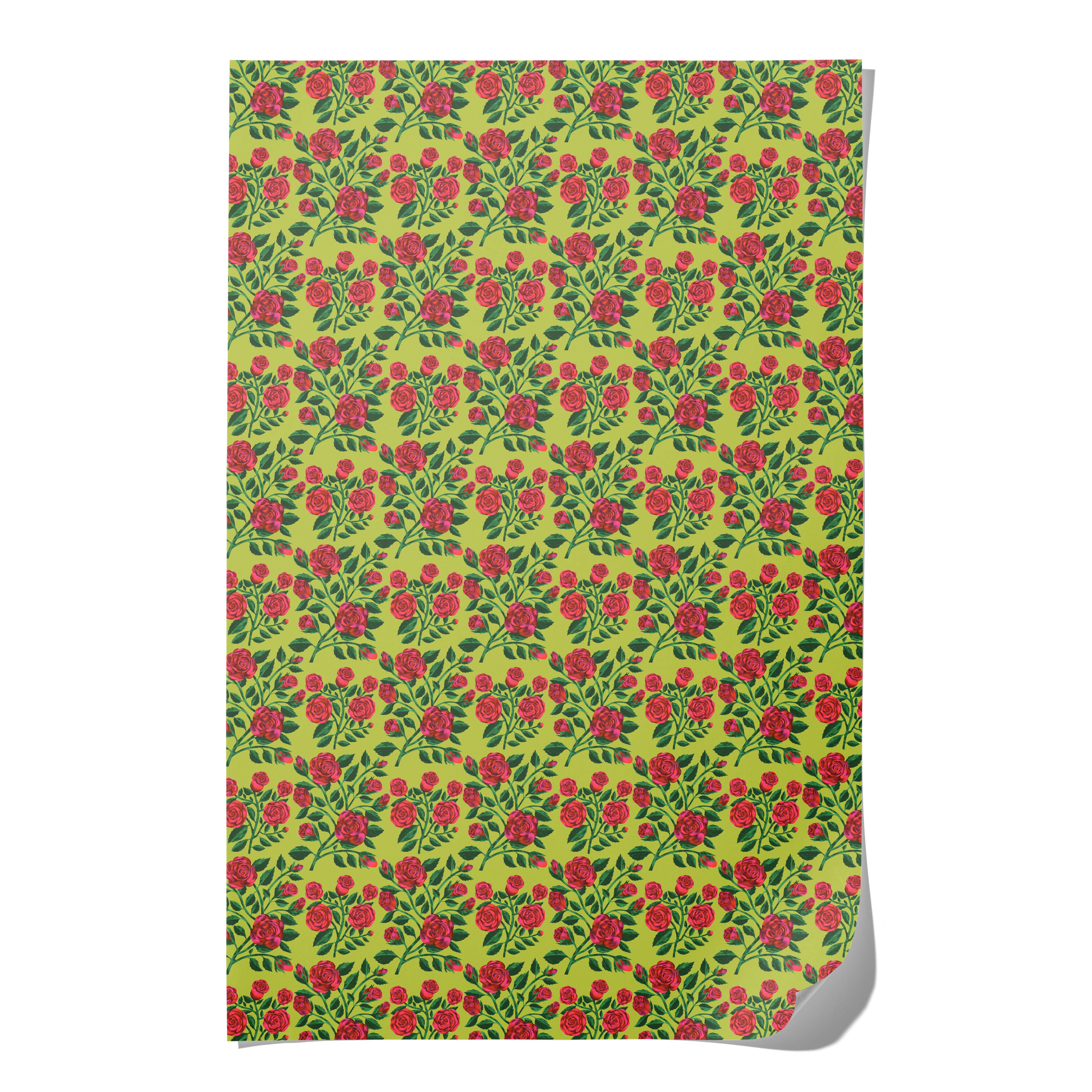 Sold as individual 19 x 27 inch sheets of flat wrap, or as 3 sheets rolled and sealed together in cellophane (without a cardboard core). Illustrated by Krista Perry. Printed by Red Cap Cards in Los Angeles, California, USA, on recycled paper.