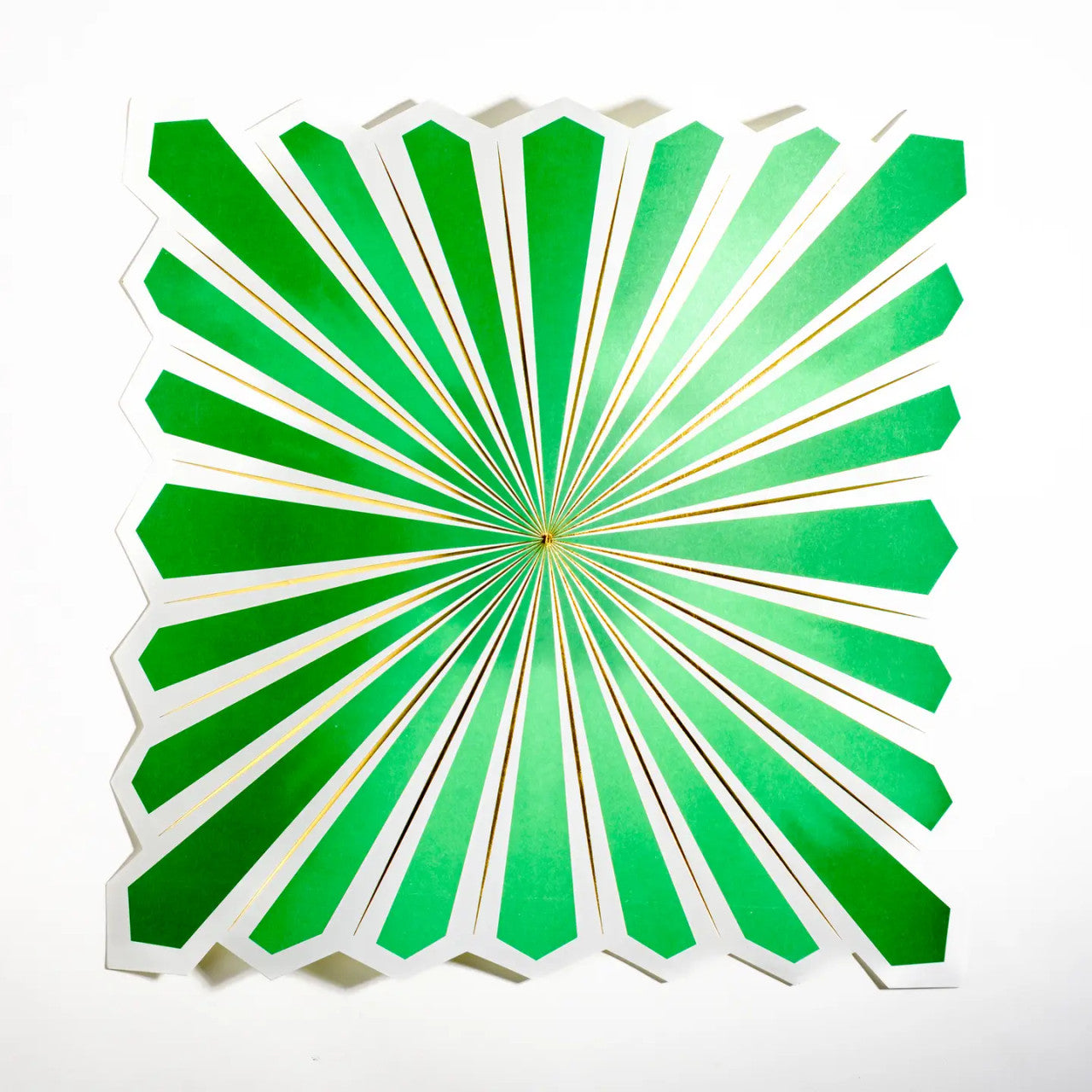 Elevate your tabletop with Green Celebration Chic Placemats. The green burst gold foil design adds a touch of fancy to any occasion. With a modern classic look, these placemats are perfect for elevating your gatherings. Create a stylish and inviting atmosphere with ease. Pack of 12. Size: 15.5'' x 15.5''