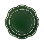 Add festive flair to your holiday table with our Green Scalloped Cream Lines Plate. Its elegant scalloped edge and subtle cream line detailing perfectly complement Christmas décor, creating a coordinated and cheerful setting for your party.