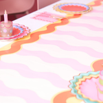 Add instant movement and color to your celebration with the Groovy Waves Paper Table Runner. Featuring a playful multicolor wavy pattern with bold scalloped borders, this eye-catching runner brings retro-inspired charm and party energy to any table.