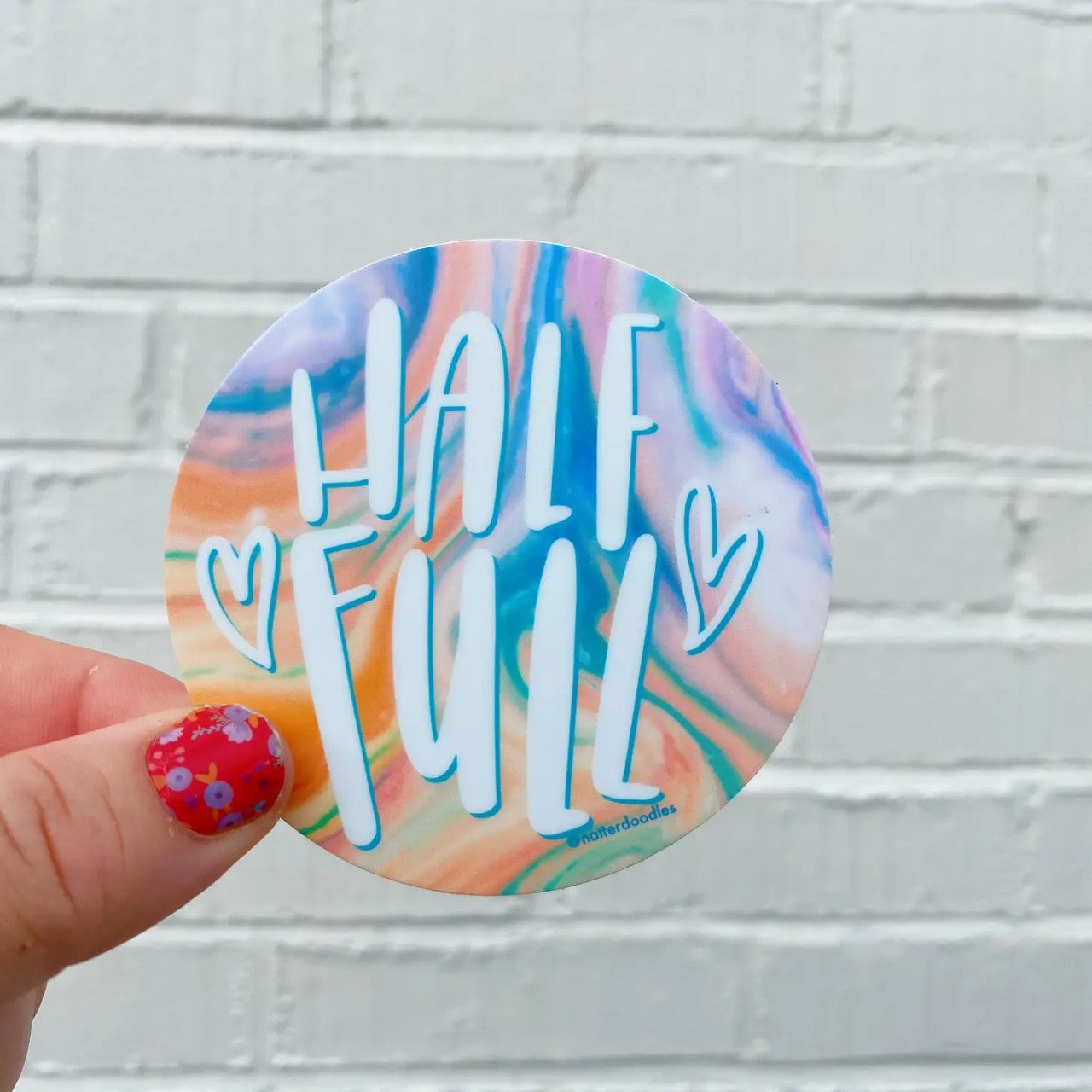 Half Full - for those of us who see the glass with rosy colored glasses! Your laptop. Your water bottle. Your car. If they don't stand for something, they'll fall for anything. Or is that people? Hm... This die cut sticker measures approximately 3" x 3" and features my signature hand lettering and design. Made from a durable vinyl with a laminate that protects your stickers from scratching, rain and sunlight.