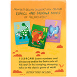 Get ready to embark on a journey back in time to the age of colossal creatures and fierce clashes in this exhilarating take on the classic game of WAR! Kids will learn number values and dinosaur names as they play to win all the cards. Includes 48 cards. 2 players. Ages 3+.