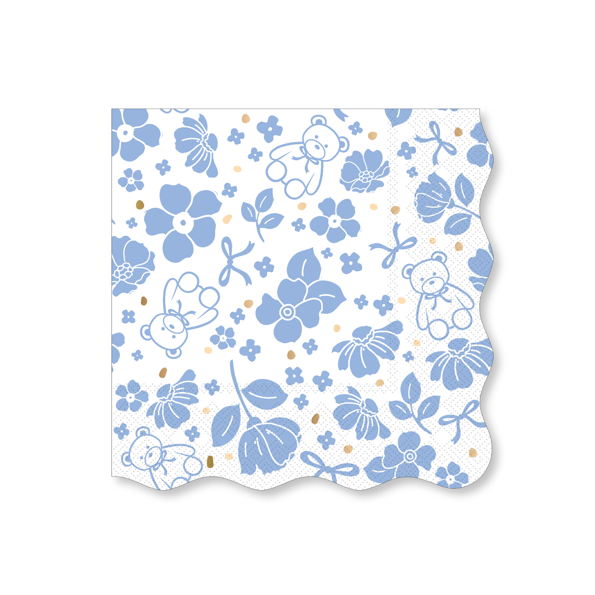 Add a sprinkle of cuteness to your gender reveal or baby shower with our Henry Bear Blue Large Napkins. Featuring beautiful blue flower patterns, sparkly gold foil details and adorable teddy bears, these dinner napkins are ideal for bringing a sweet touch to your celebrations!