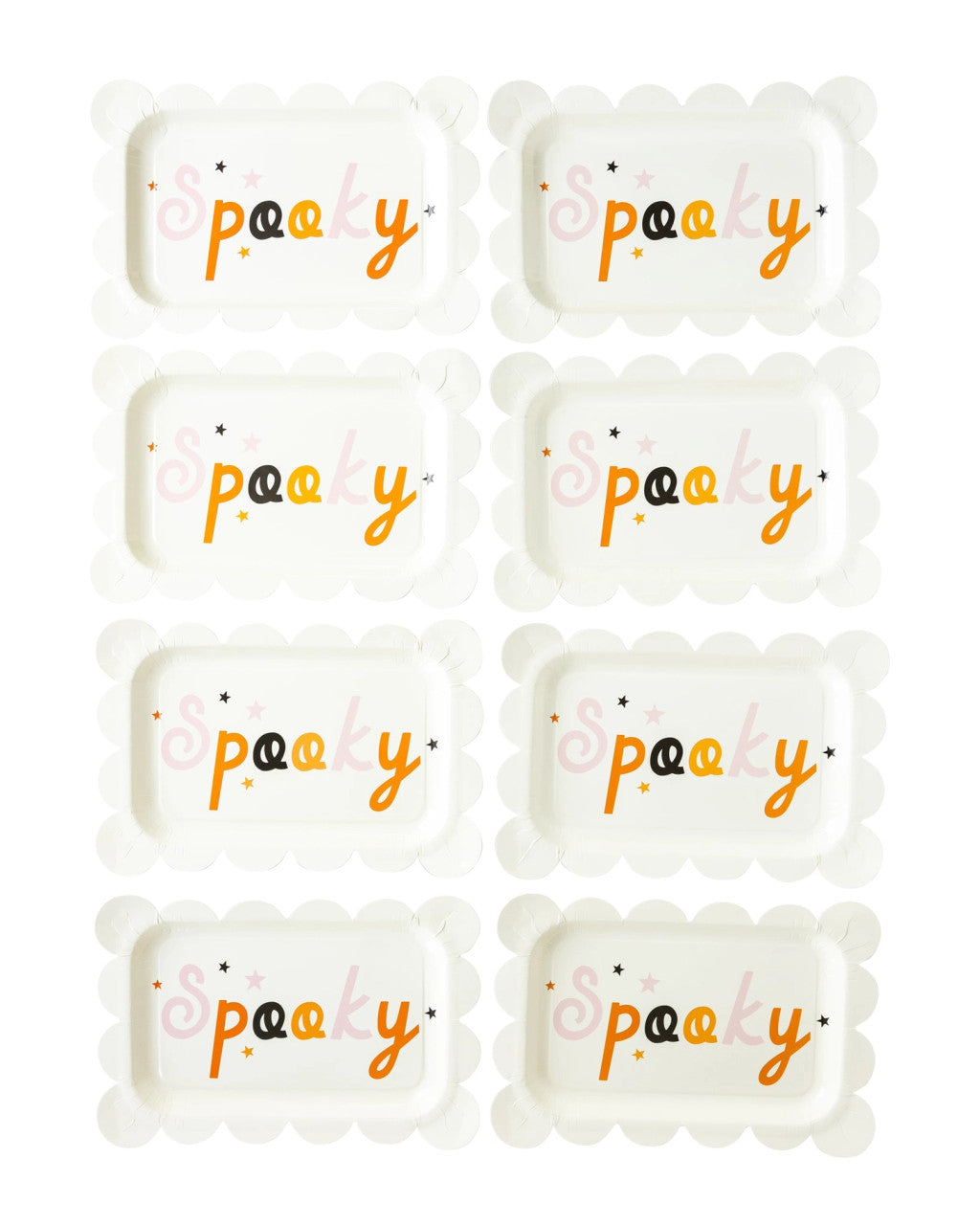 Add spooky magic to your table this halloween with these scalloped spooky plates. Featuring the sentiment "spooky," in bright a bright modern halloween color palette, these plates are a spooktacular addition to ghouls nights in or not so scary kids halloween parties.