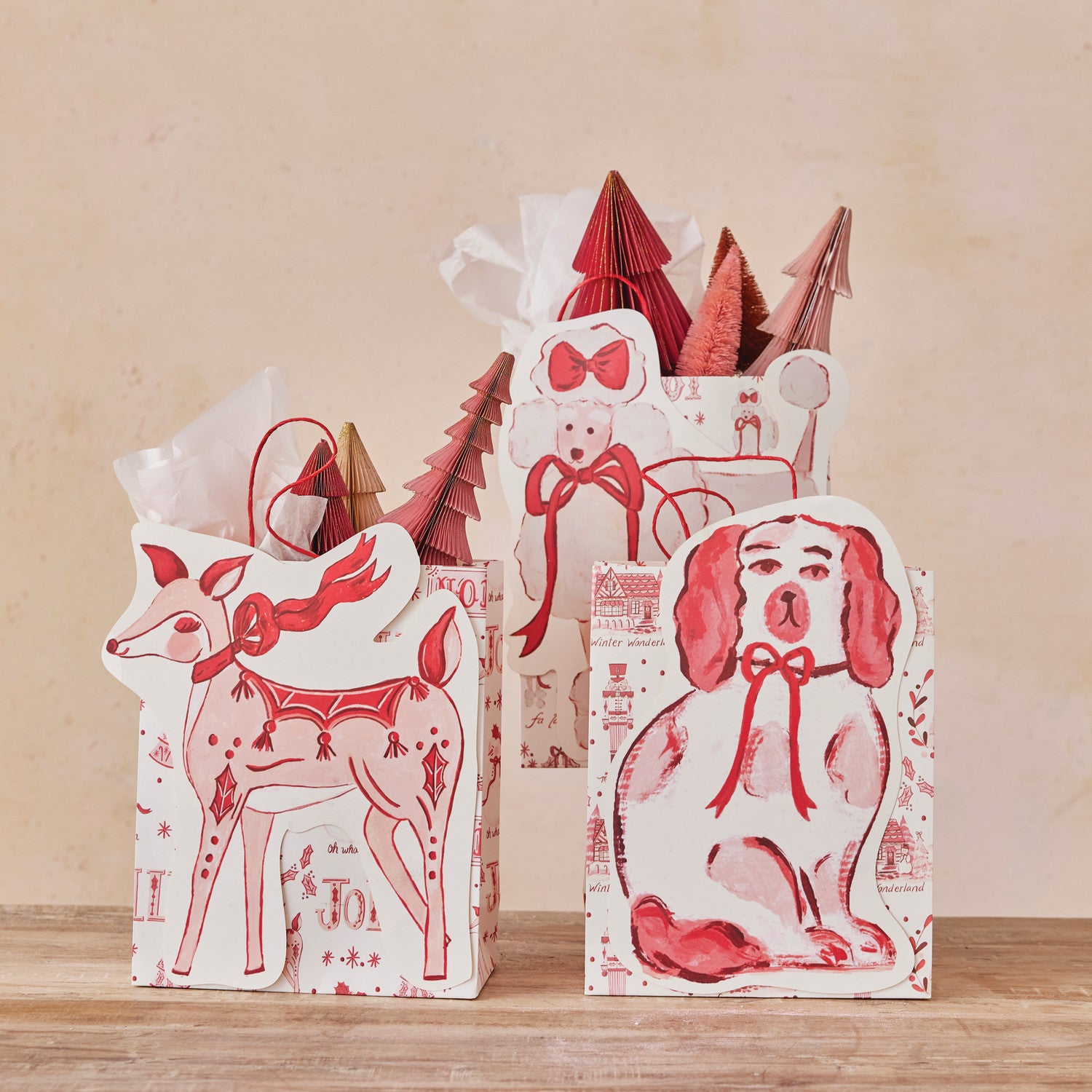8-1/2"L x 4"W x 10-1/2"H Handmade Printed Recycled Paper Gift Bag w/ Dog/Deer & Holiday Pattern
