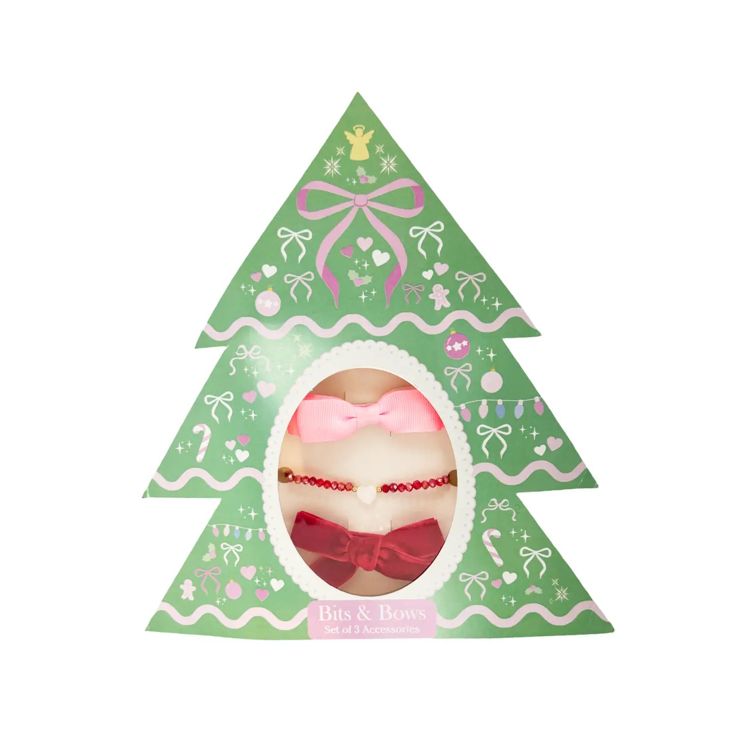 2 bows and a bracelet make the perfect gift to delight every little girl with some holiday magic in this festively designed tree box. Elevate any holiday display with this stunning piece!