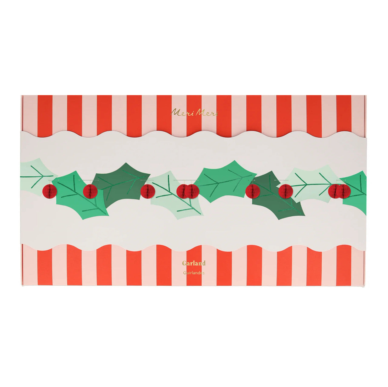 Deck the halls with boughs of holly! This beautiful Christmas garland, with 3D honeycomb holly berries and glittery leaves, is perfect to place in the hallway, in the doorway, on the walls or stairs, draped on the mantel or on your party table.