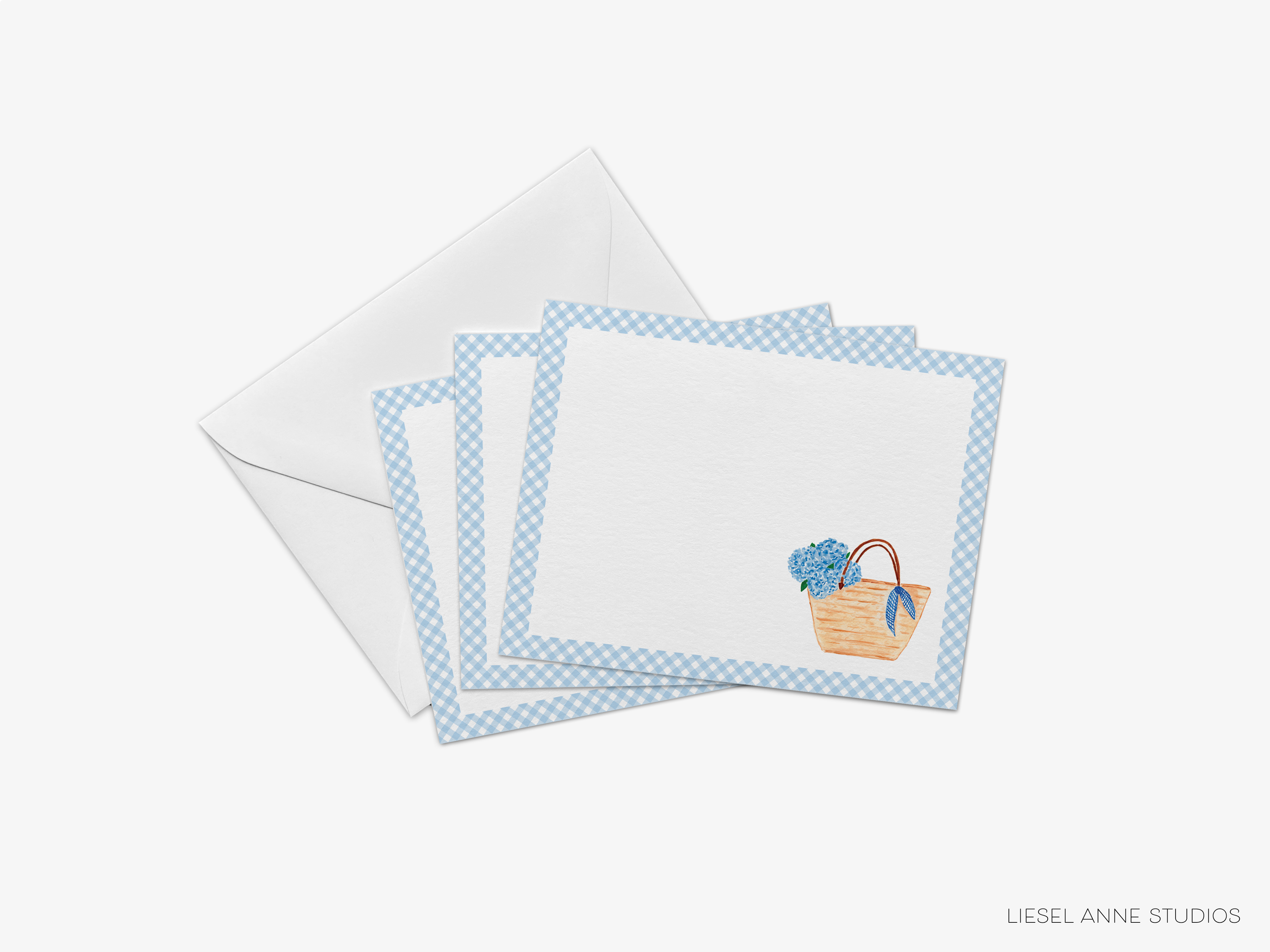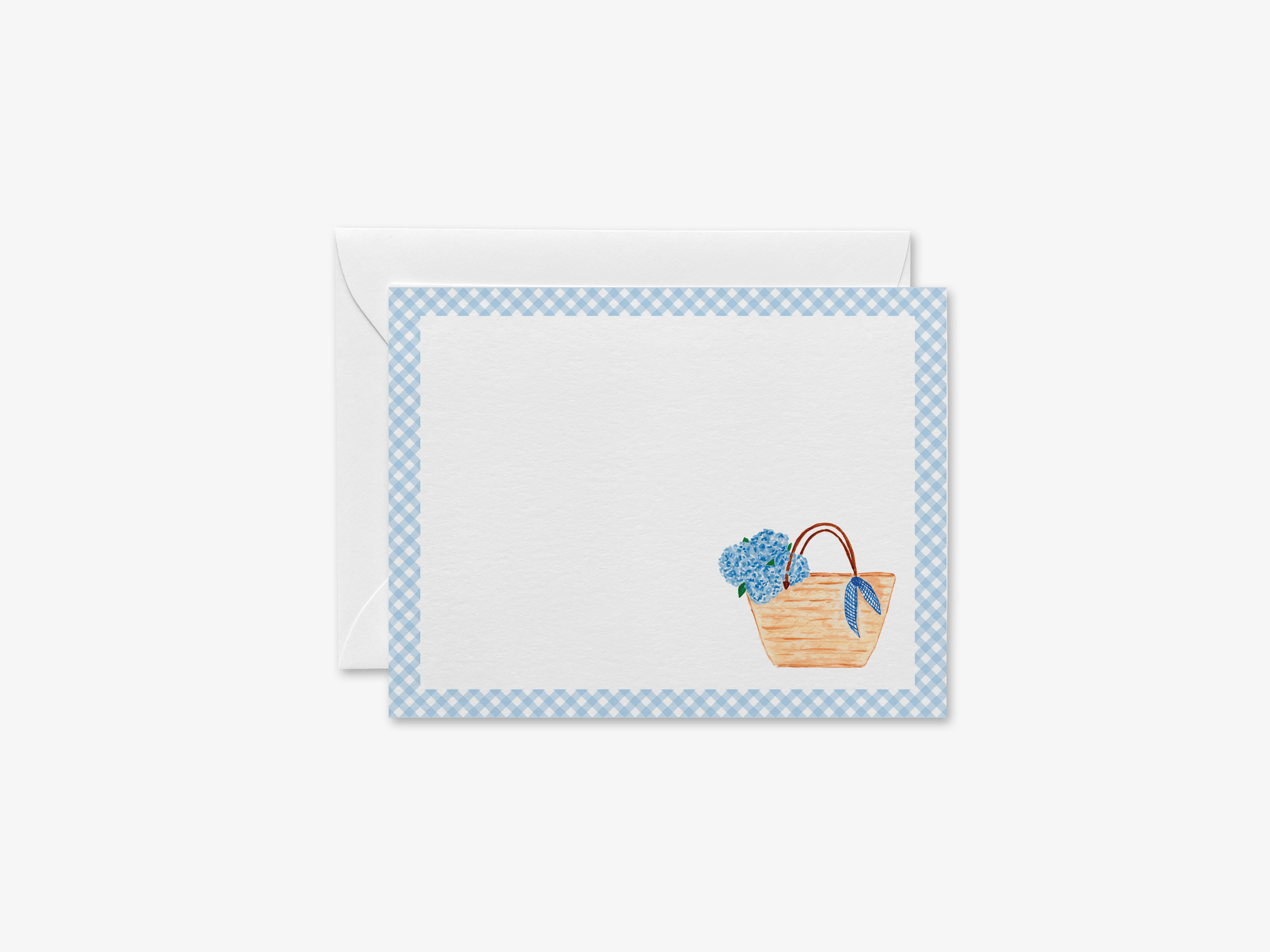 Hydrangea Rattan Bag [Set of 8] | Blue Gingham Notecards | Thank You Notes | Hostess Gift | Gift for Her | Tote Bag Cards