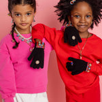 Brrr, time to keep those precious little hands covered! The coziest member of the Super Smalls crew is perfect for everything from ice skating outings, to walks to school, and sipping hot cocoa with pals. Embellished with colorful gemstones, now you can keep your fingers warm and your jewelry popping! Welcome to a winter sparkle-land.