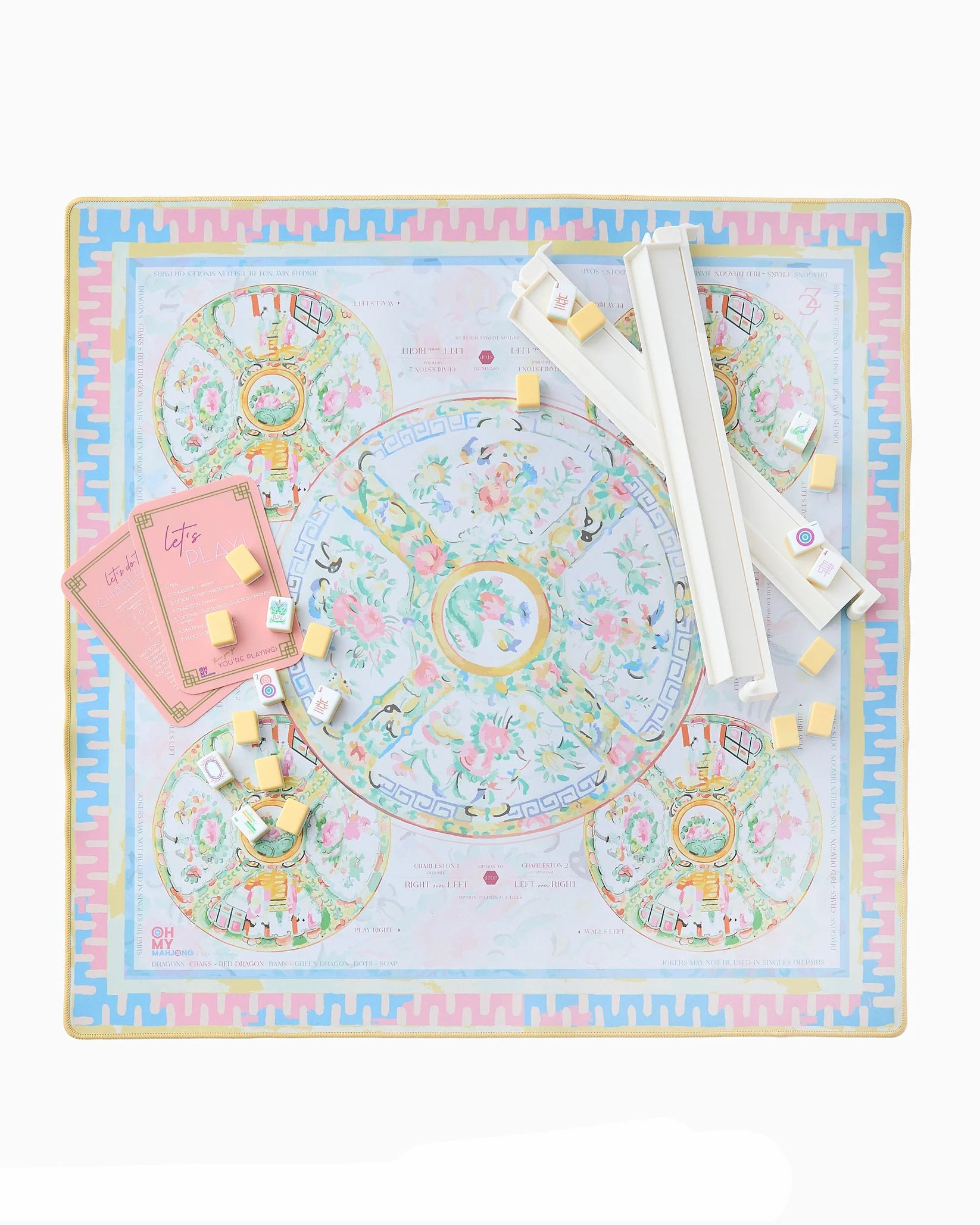 Step into sophistication with the Imperial Mahjong Mat, a stunning collaboration with CoCo Zentner. This mat blends rich, regal motifs inspired by classic designs with modern elegance. Its light hues and intricate patterns bring a refined edge to your game night, perfectly balancing tradition and contemporary style. The neoprene material makes cleanup easy, while the rubber non-slip backing ensures durability and grip. With instructional reminders around the border, Imperial combines elegance with practical gameplay.