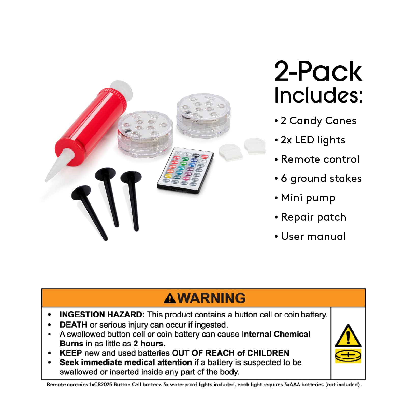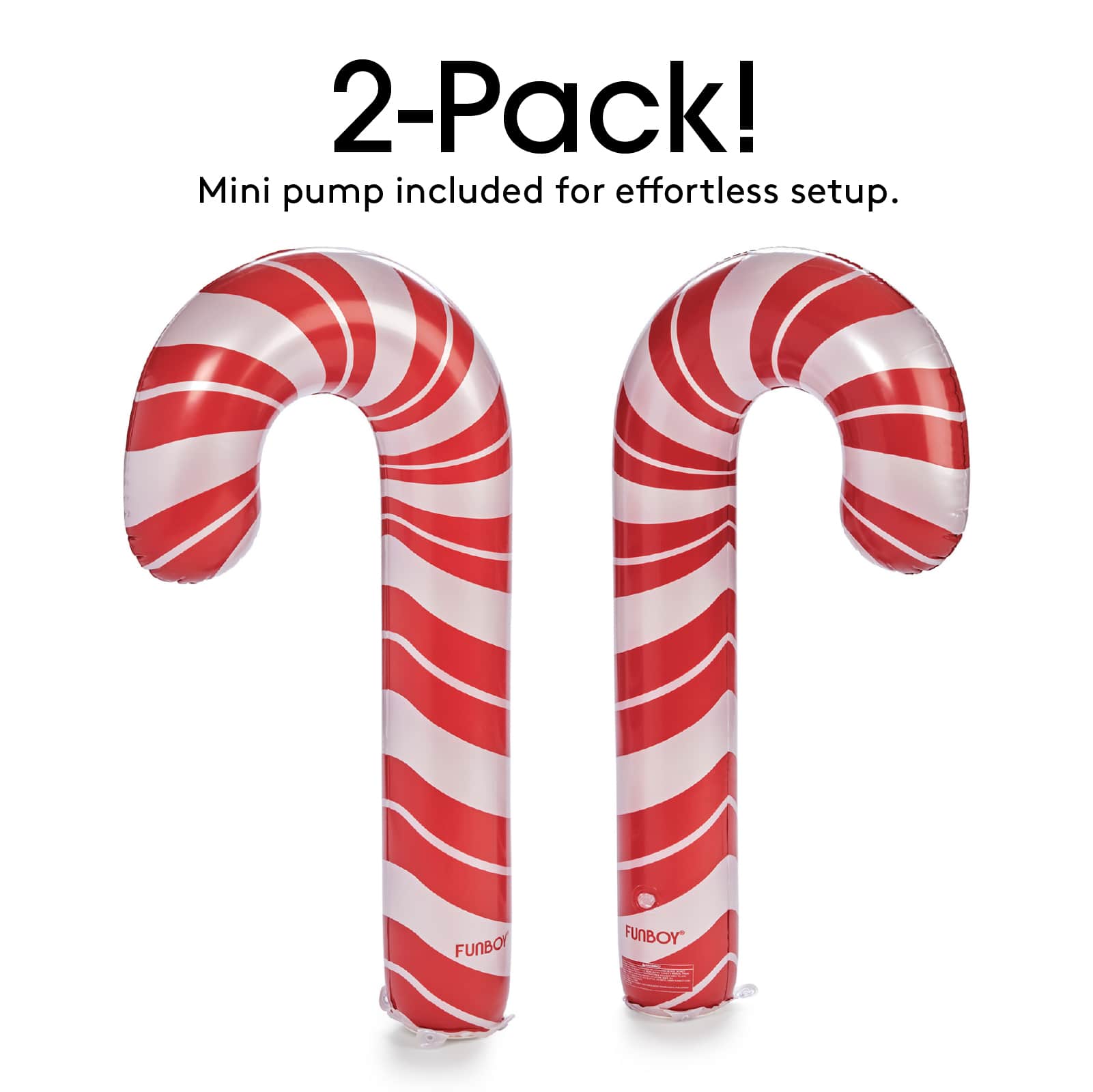 Inflate along your entryway or sidewalk and bring the magic of the holidays to life with FUNBOY’s oversized Inflatable Holiday Candy Canes! Perfect for both indoor and outdoor decorating, these festive inflatables feature integrated LED lights with customizable colors and modes, all controlled by a convenient remote. Durable and weather-resistant, each candy cane inflates quickly, stays secure with included ground stakes, and deflates easily for compact storage. Whether displayed by your tree, along a pathway, or outside in the yard, FUNBOY’s candy canes are the ultimate statement piece to brighten your holiday season. Mini hand pump included for easy inflation.