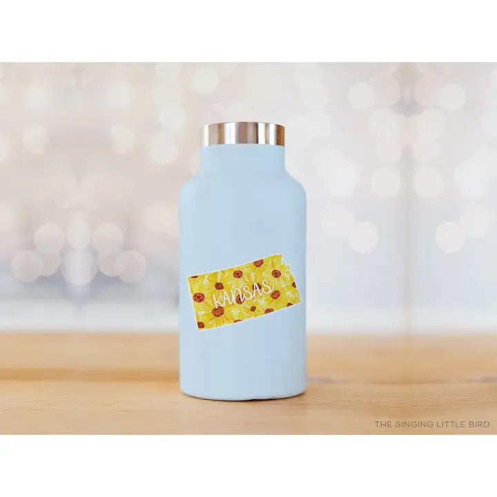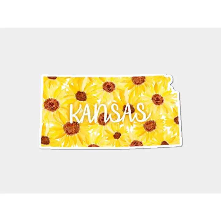 • White Matte Premium Vinyl Die Cut Sticker • Measures approx. 4" on longest side • Coated with a protective laminate that makes them extremely durable and resistant to fading, scratching, tearing, and water • Designed and printed in the USA • Loose stickers (no additional packaging) for easy display Kansas Vinyl Sticker | Watercolor Kansas Sunflower Decal Sticker | Die Cut Durable Weatherproof | Laptop Cell Phone Water Bottle Sticker