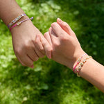 Spread some love to your little one and their bestie with the Kids' Forever Friends Bracelet Set. These two matching bracelets are both pretty in purple and pink, with gold interlocking hearts. Super cute, they brighten up any kid's wrist stack, while bringing friends even closer together.