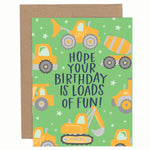 Send a truckload of fun with our Loads of Fun Birthday Greeting Card. Perfect for little ones and heavy machinery enthusiasts, this playful card is a charming way to wish them a truckload of joy on their birthday.