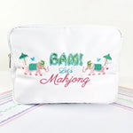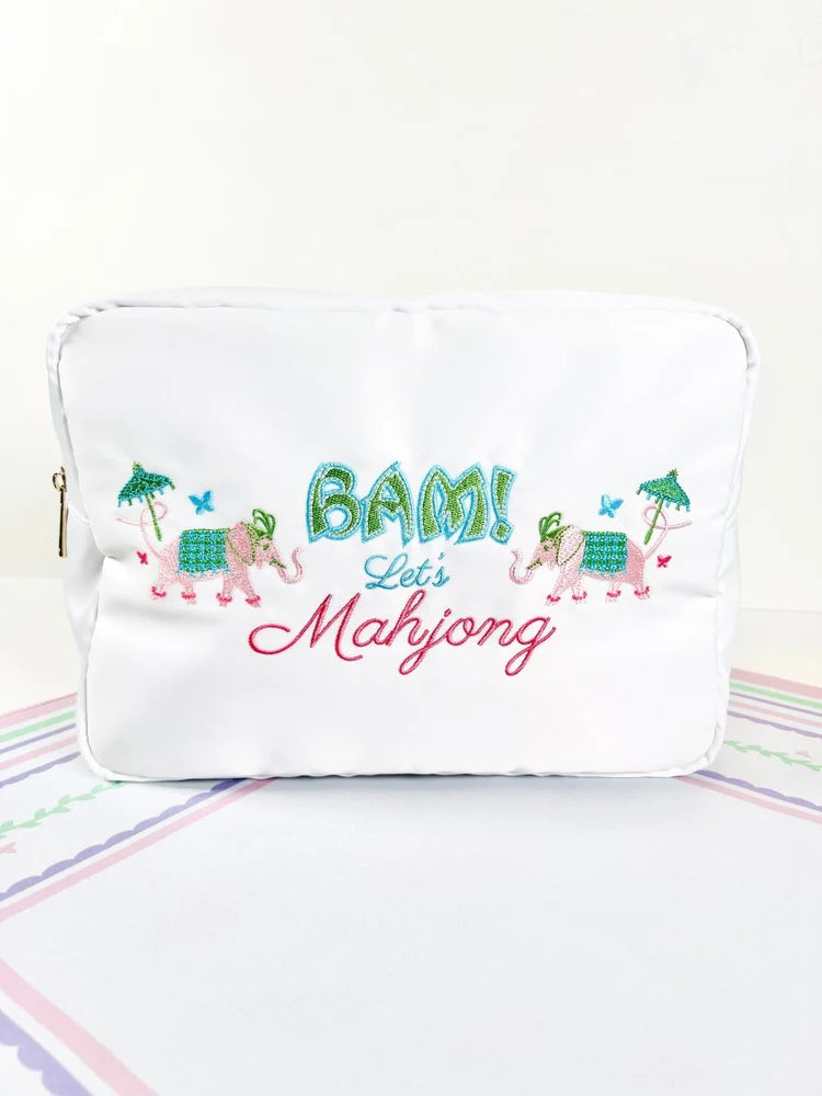 Introducing the perfect blend of style and function! Our embroidered Mahjong bag features two darling pink elephants and a cheeky little phrase: “Bam! Let’s Mahjong®️.” It’s the cutest way to carry your tiles in style.