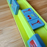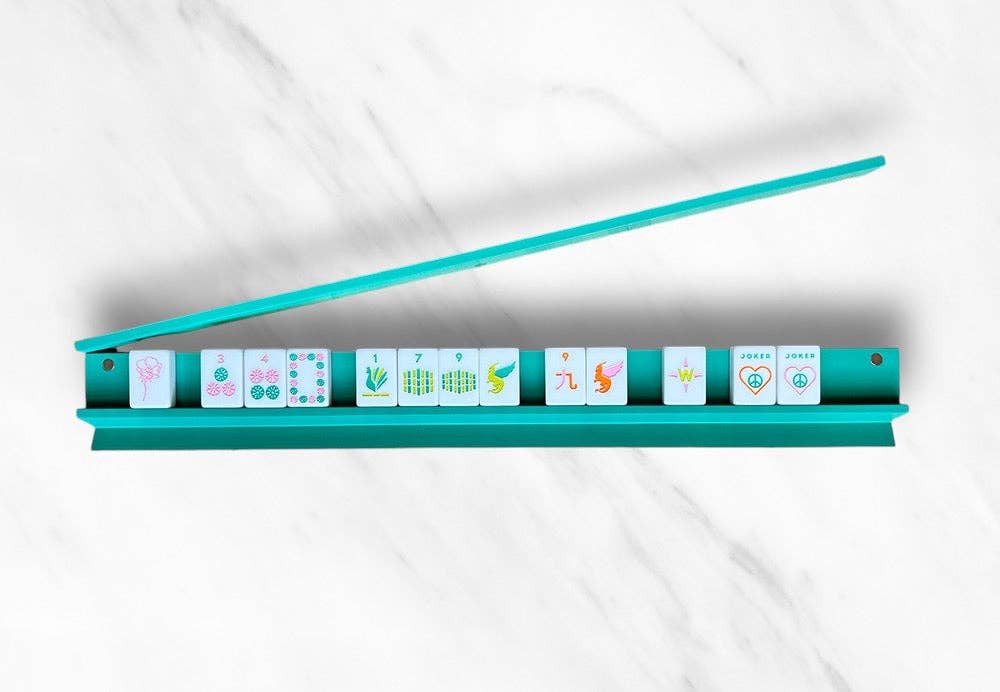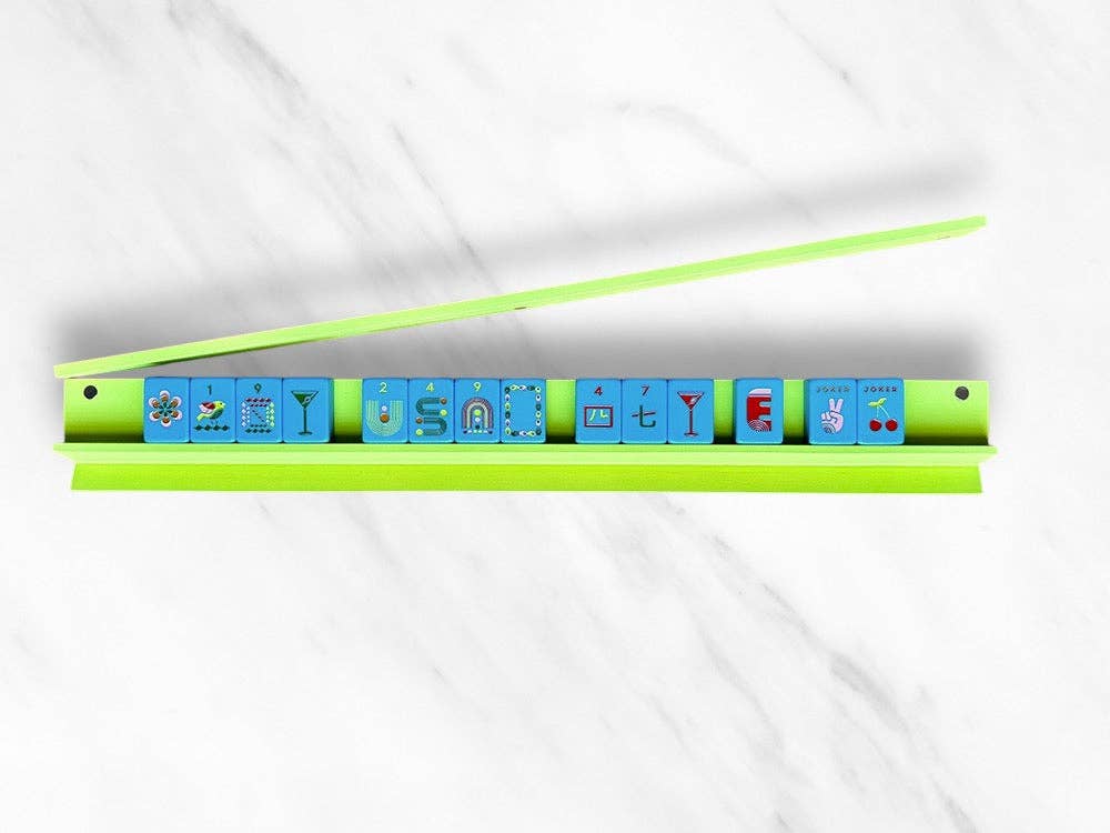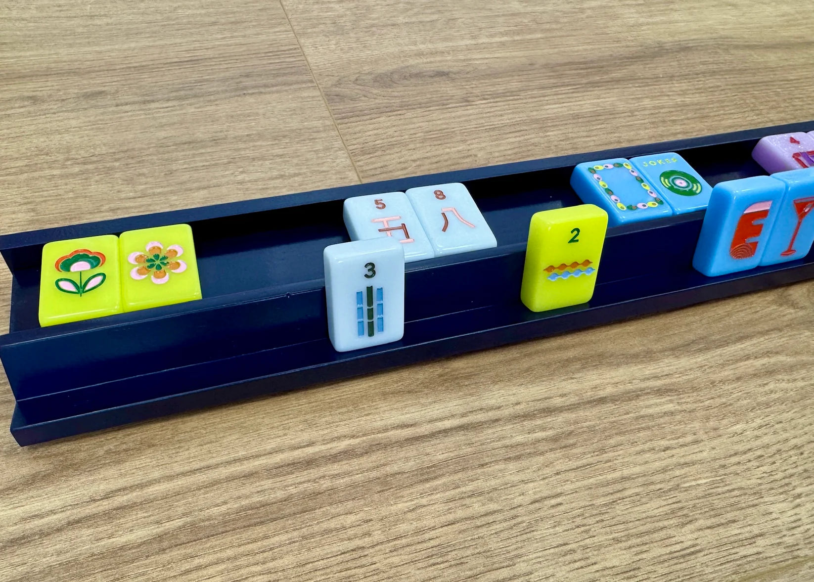 Our mahjong racks are made especially for our larger tiles. They are designed to curtsy your entire wall in one motion and will eliminate the hassle of those extra tiles hanging off the end of your shortie racks.