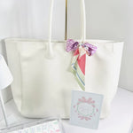 Additionally, each tote comes with a 100% silk twilly, perfect for tying it in a cute bow or wrapping it around the handles.