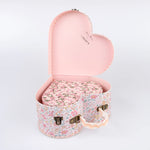 This sophisticated suitcase set, created in collaboration with Liberty, is not only a fashionable accessory, they can also double as decorative storage solutions for your home. Featuring Liberty floral print designs in pink tones, and fabric handles adorned with ricrac details, they're a must-have for kids aged 3+ and adults. Made from durable card, these heart-shaped suitcases blend practicality with elegance, making them a wonderful gift for someone special. Driven by discovery, Liberty has been home to the artistic shopper since 1875. Famed for its directional design and celebration of craftsmanship, its prints are created in the heart of London by the Liberty design studio
