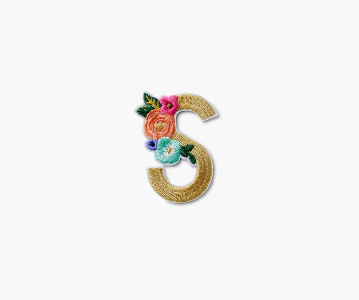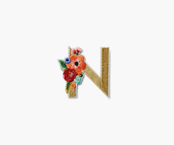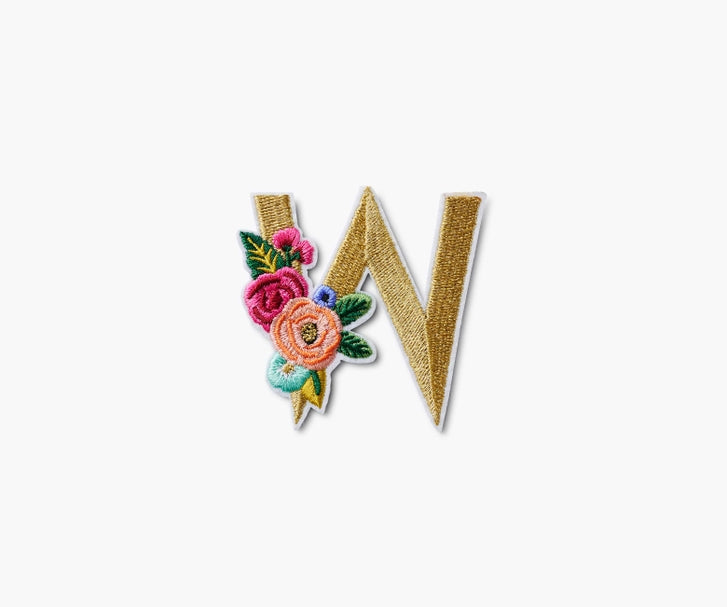 Garden Party from A-Z. Our embroidered monogram patches feature metallic letters and a bouquet of our signature Garden Party florals, perfect for personalizing all your favorite things. Sew one on a jacket, personalize your phone, or stick it to a pouch. They are made with an adhesive backing, but can be sewn for more permanent placement.