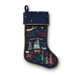 Featuring intricate, nativity-inspired illustrations, twisted gold piping, and a loop for hanging, this heirloom-quality stocking will bring brighten the mantle for many holidays to come.
