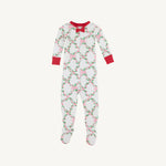Happy holly-days! Our Noelle's Night Night featuring T.B.B.C. Holly Day, a holiday twist on our classic Belle Meade Bow print, couldn't be sweeter! Made from Pima Cotton, this pajama features built-in feet and a zip-front closure making it as practical as it is adorable.