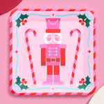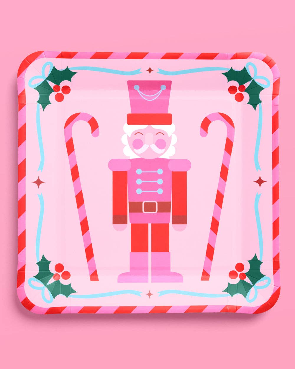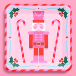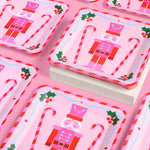 Nutcracker center flanked by candy canes + holly leaves in the corners