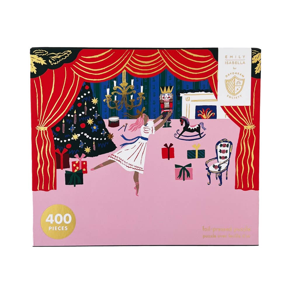 A sugar plum dream come true! Featuring a gorgeous color palette and shiny gold foil, this nutcracker puzzle is ready to twirl its way into any holiday celebration!