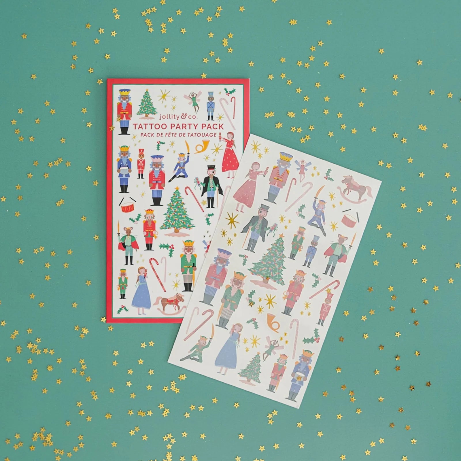 Cue the sugar plums and festive fanfare — the Nutcracker Party Pack Tattoo Sheets are here to turn your holiday gatherings into a whimsical winter wonderland. Featuring charming illustrations, classic holiday colors, and a playful dose of cheeky humor, the Nutcracker Party Pack Tattoo Sheets capture all the magic (and mischief) of the season.