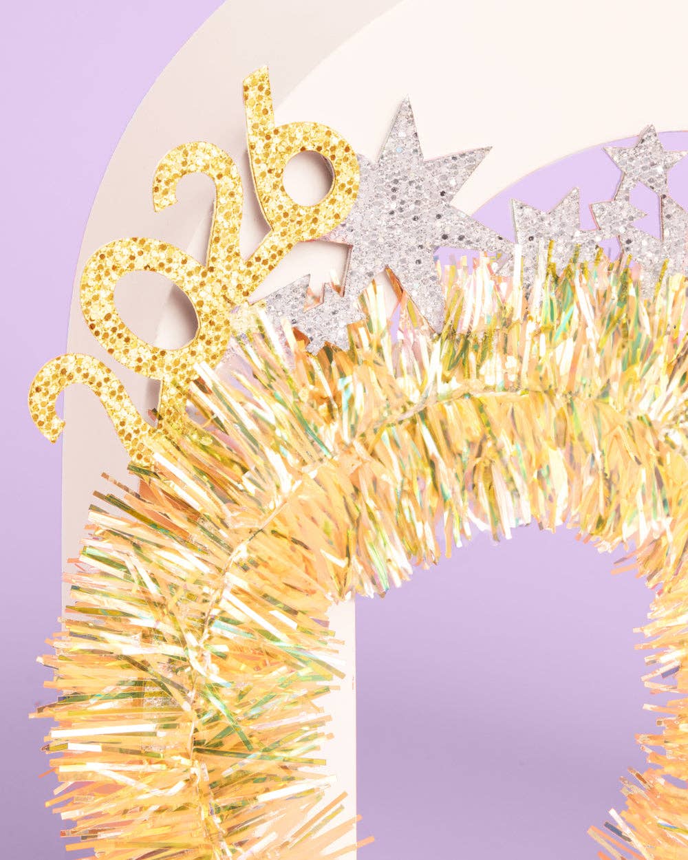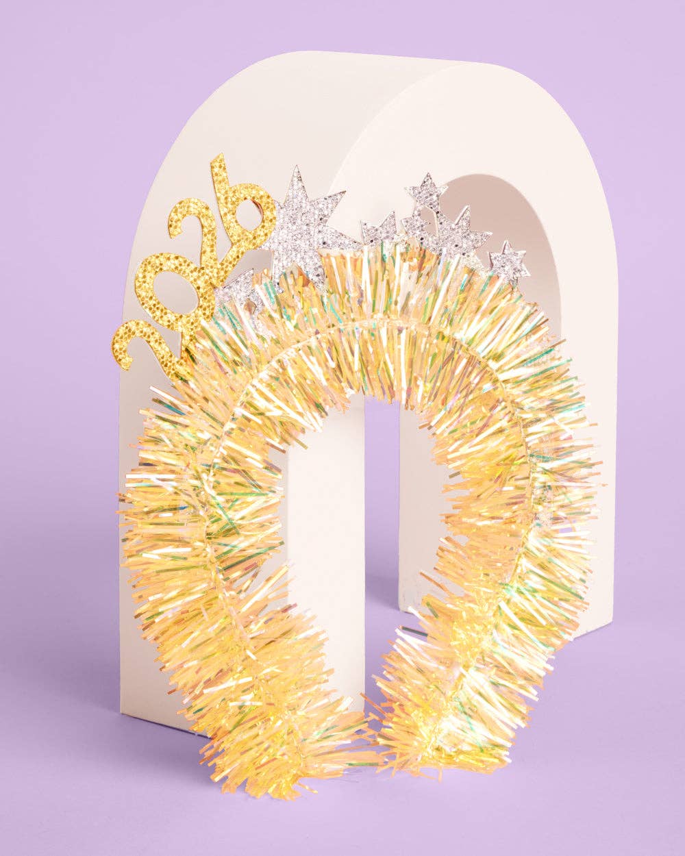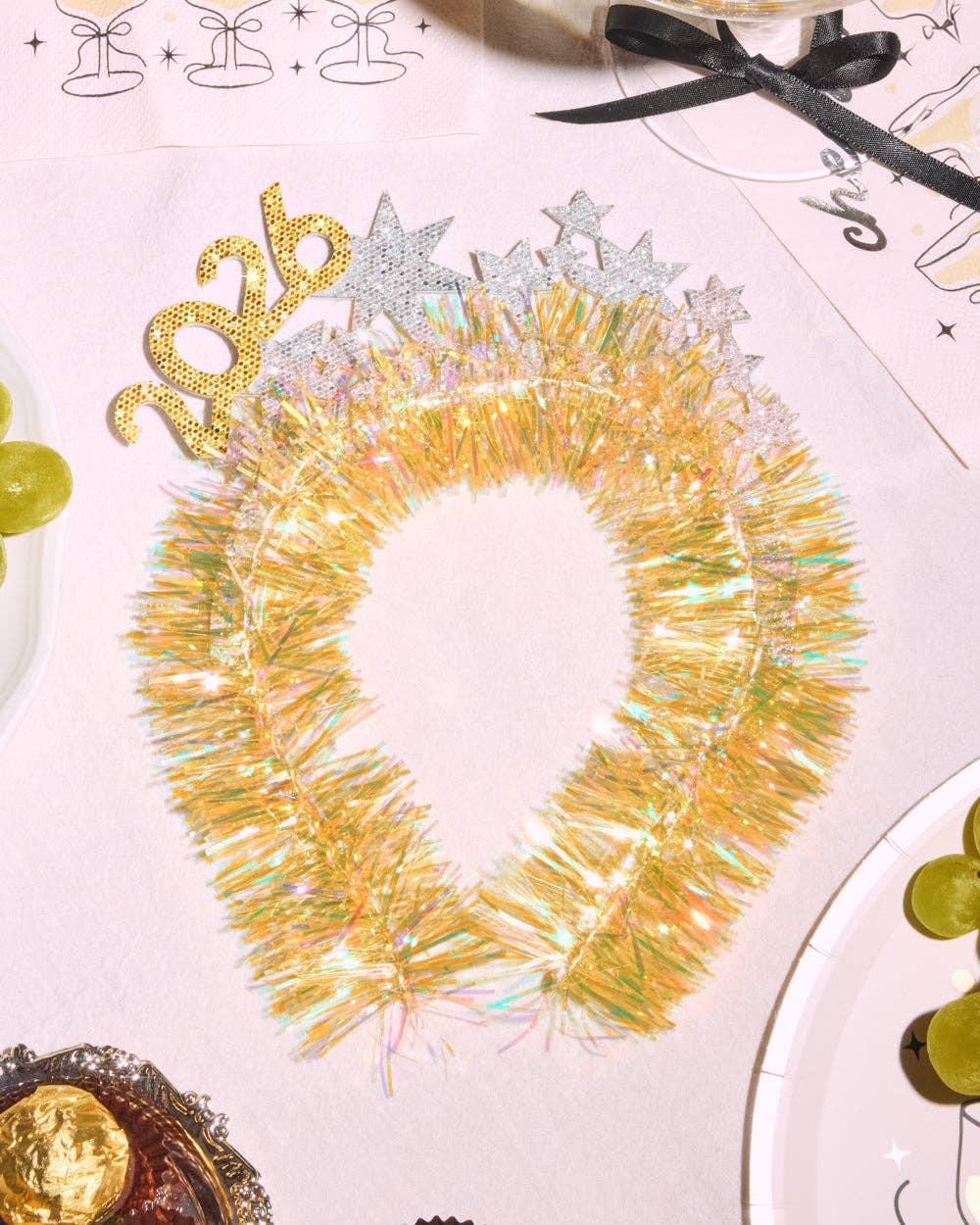 Midnight called — it wants your main‑character moment. Gold glitter 2026, silver stars, and tinsel catch every flash while the comfy headband stays put. Perfect for New Years Eve pics, toasts, and dance floors.