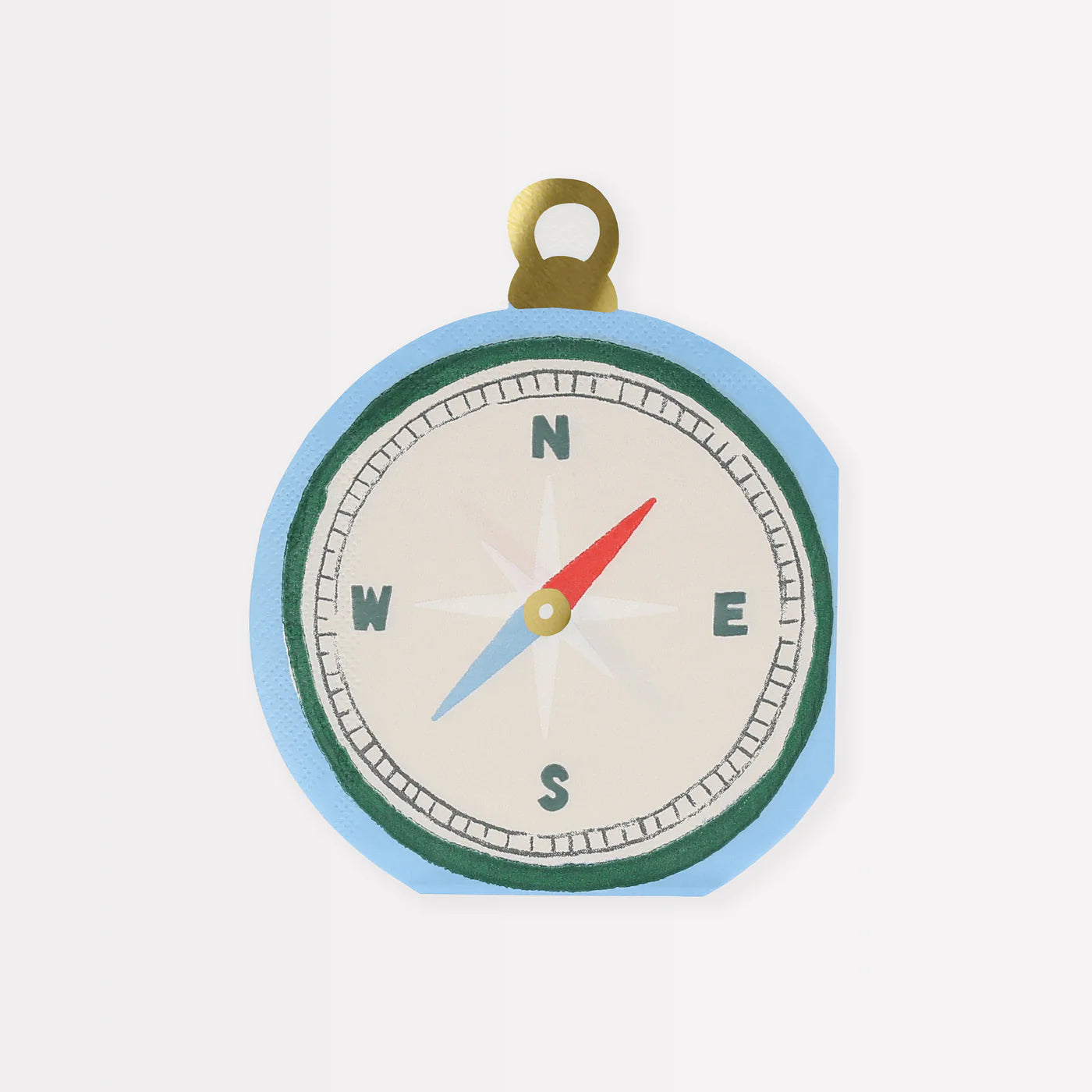 Who says napkins just have to be plain and practical? Our clever designers have made these special camping adventure napkins in the shape of a compass. The perfect addition to any party designed to celebrate the magic of the outdoors. Use them to decorate your party table, camping or picnic area, and have great fun pretending to use them for directions! Just add s'mores, stories and party games for an unforgettable time