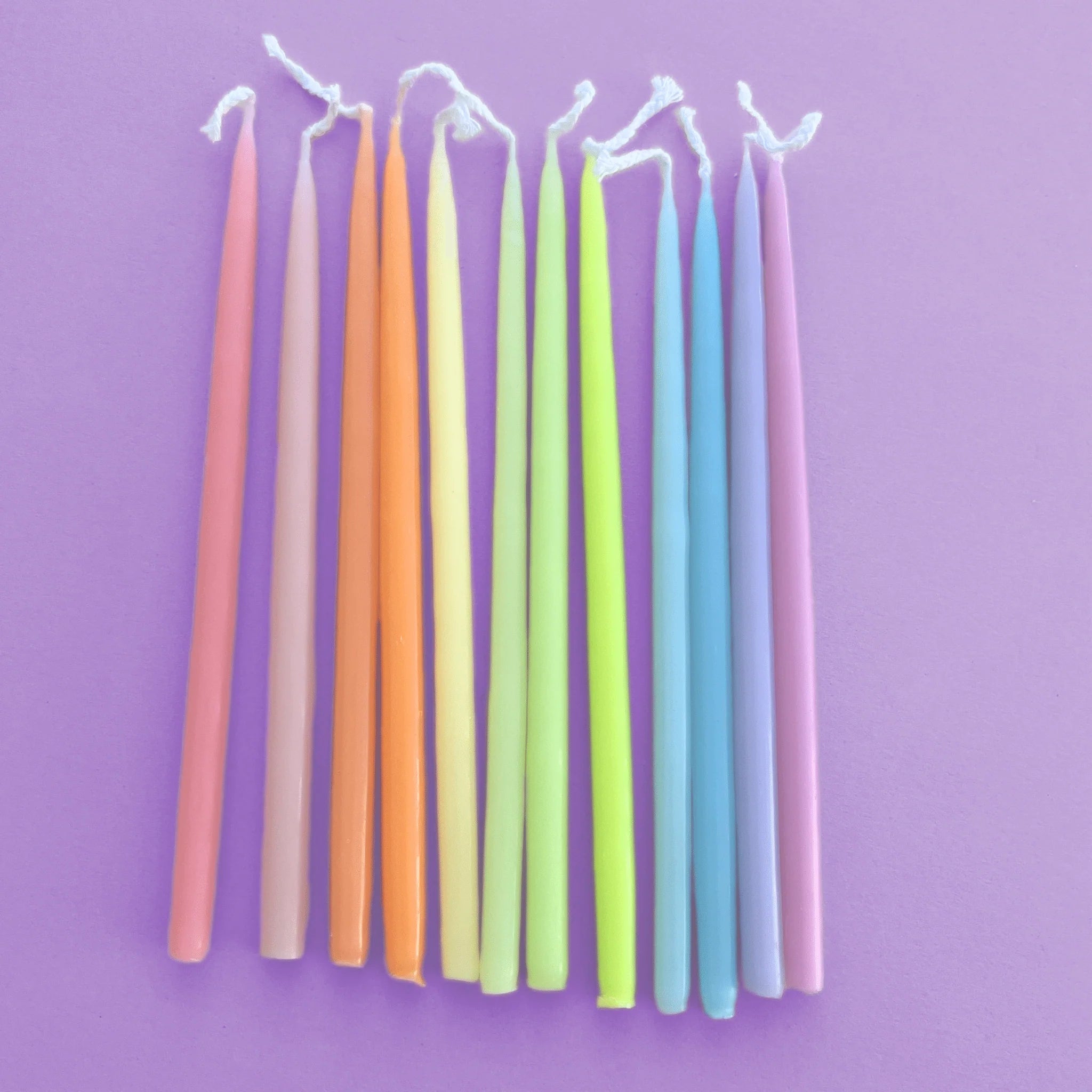 🕯️ Pastel Rainbow Tapered Candle Set (x12) – A touch of soft color and warmth for every celebration!