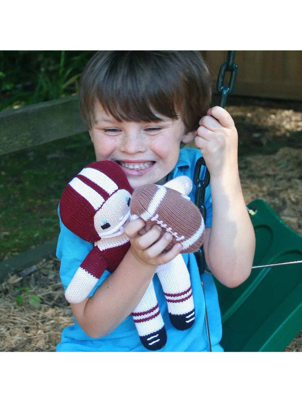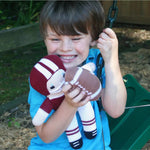 Phil the football knit rattle loves football, how could he not? He loves being thrown around and going to football games! He's also super fluffy and soft so he doesn't hurt anyone! Have great times with phil and don't worry about him getting dirty because this football knit rattle is machine washable for easy care! Our football knit rattle is handmade in the philippines by artisan knitters using only all-natural 100% cotton yarns and eco-friendly dyes to make a baby rattle that is very soft and also safe for kids of all ages! *5" rattle *100% cotton and we use eco-friendly dyes. *tested 100% safe by the u.s. Product safety commission standards. *100% lovable & huggable but more importantly…machine washable! *handcrafted in the philippines by artisans.