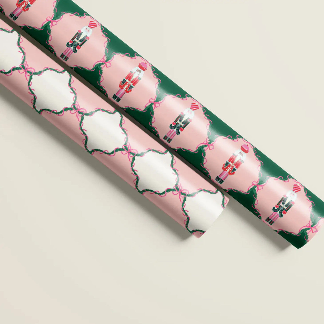 Pink Nutcracker Trellis Bows Double Sided Gift Wrap