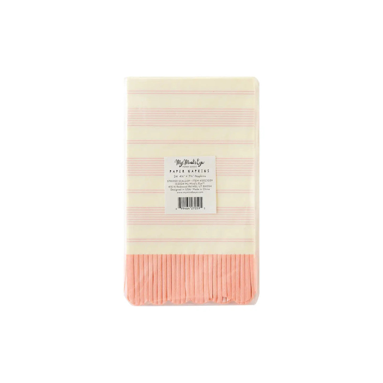 These super-cute, fringed napkins are the perfect addition to any Valentine's Day dinner. Whether you're hosting friends, significant others, or yourself, the pink stripes will add some whimsical charm to any occasion. What a dainty way to impress your guests! • 24 - 4.75 x 7.25 inch paper napkins • die cut fringe