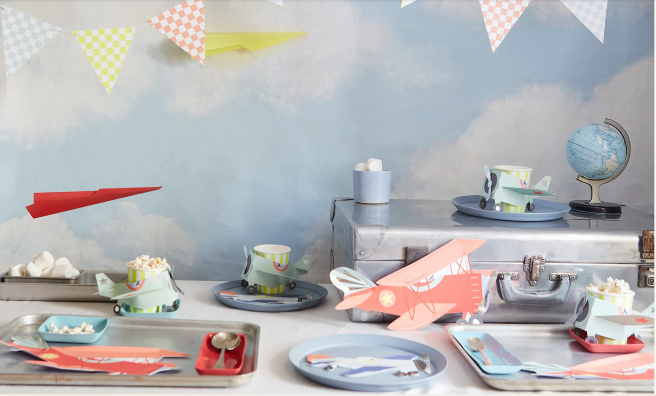 Take to the skies! Let our vintage airplane plates swoop onto your party table to thrill your guests. They're colorful, shiny and perfect for any party where you want an aviator theme.