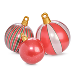 Santa will have no issues finding your house with these oversized light-up festive Ornaments! Sold as a 3-pack with a Large (24”), Medium (22”), and Small (16.5”), these inflatables are perfect for indoor or outdoor use - they even float! Features include bright battery operated LEDs with 16 different colors and multiple light modes, including a flash and fade party mode. Remote control with timer. Built with a weighted base to stay upright, these ornaments bring a touch of Christmas magic that lasts through the season. The waterproof design allows for fun in the pool or snow! Inflatable and easy to store. Patent pending. Spread the cheer! Each ornament requires 3xAAA batteries (Batteries not included).