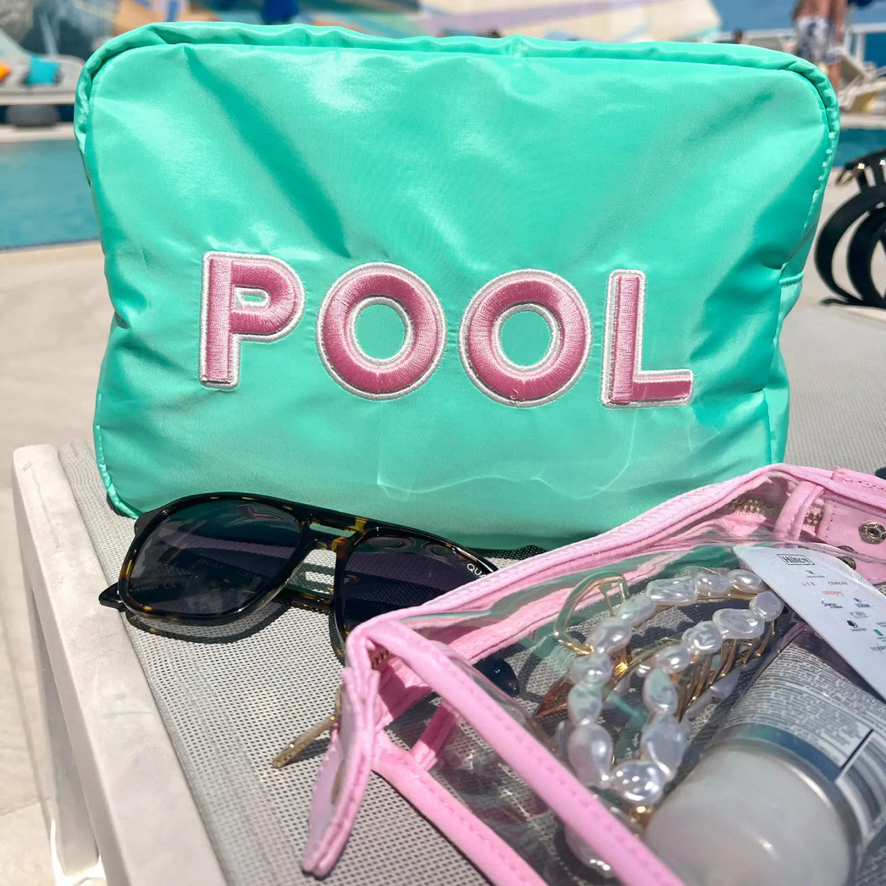 Pool XL Bag! This bag is perfect for ALL summer essentials. The XL bag will hold your sunnies, sunscreen, bathing suits, & more! You definitely need this for your summer vacation! Dimensions: 11 x 5 x 8 inches