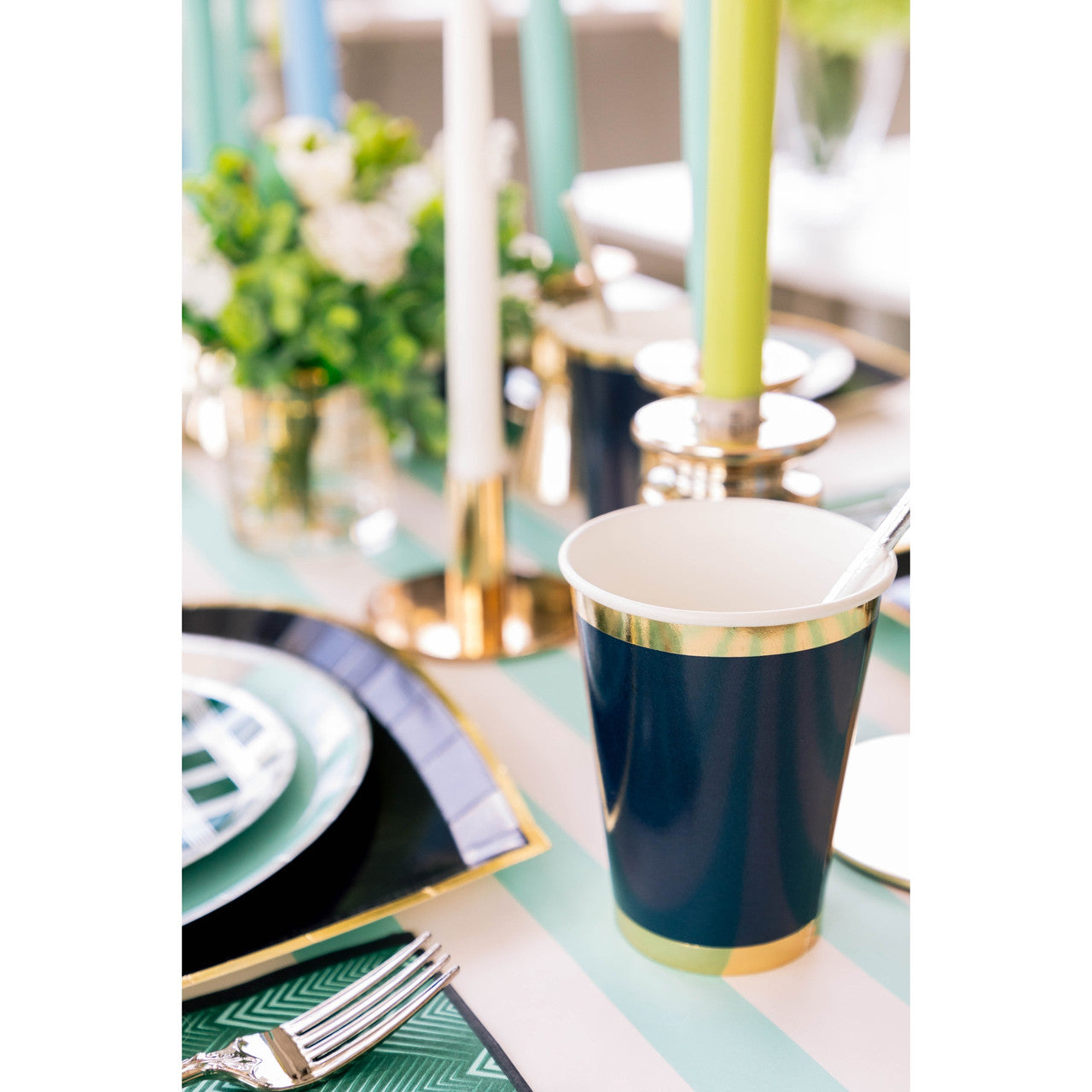 Basics that are anything but, our posh collection is the luxe way to set your table. We’ve got you covered in colors for any occasion with solids with fab gold foiled rims and solid foil designs. - Paper Cups - Gold foil detail - Approx 12oz - Pack of 8 - Not safe for microwave use