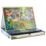Great for playtime on-the-go, our new magnetic scenes with drawer provide endless hours of fun for little ones! Pick from any of our colorful, imaginative scenes with dinosaurs, zoo animals, princesses or mermaids. Each design comes with 2 interchangeable magnetic backdrops and over 50 magnetic pieces, for endless possibilities. Fold down the lid and store the magnetic pieces in the convenient storage drawer for easy clean-up. Kids with love creating their story masterpiece no matter where the adventure takes them! Great for road trips, sleepovers, and more. *2 illustrated scenes and 50 fun magnetic pieces *Folds up for easy travel and storage *Approx. 8.5”x 11.75” (21.59cm x 29.79cm) *Cardboard magnetics and paper-wrapped cardboard *Wipe clean