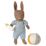 The perfect gift set to start hours of storytelling. It contains a small ball, a soft rabbit in size micro with magnets in hands to hold the baby bottle. All fitted nicely together and a great start of any rabbit collection.