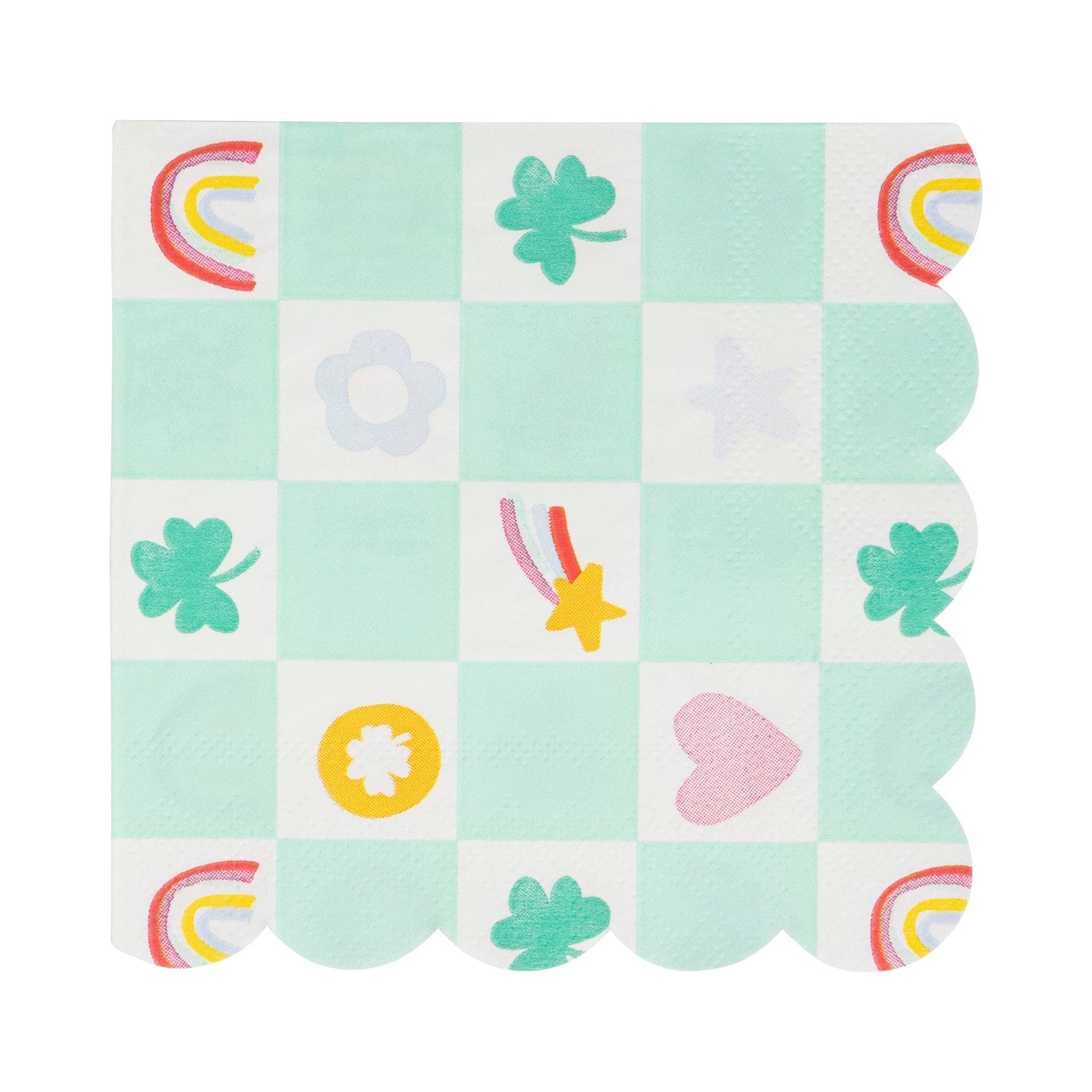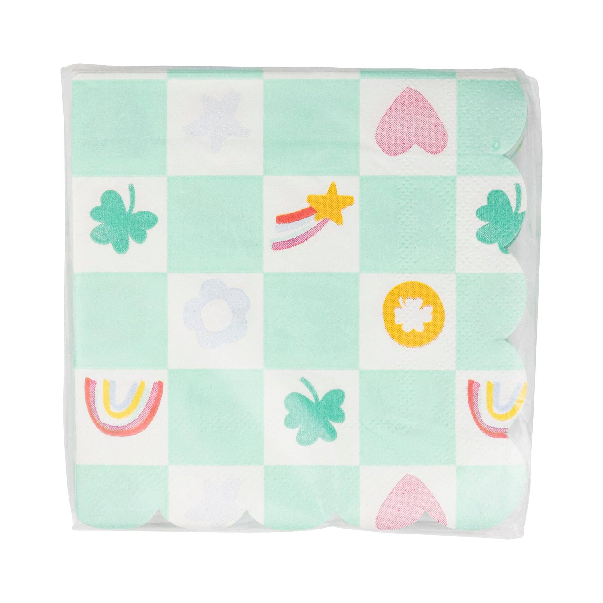 Add a touch of whimsy to your St. Patrick's Day celebrations with our Rainbows Scallop Cocktail Napkin. This checkered napkin will make your drinks stand out in a sea of green. Perfect for any party, this napkin adds a fun and playful touch to your festivities.