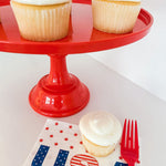 Enjoy this perfect sized classic red melamine cake stand for your next party. This cake stand is sturdy and elegant, adding a touch of fun color to your next party without the worry of a glass cake stand!