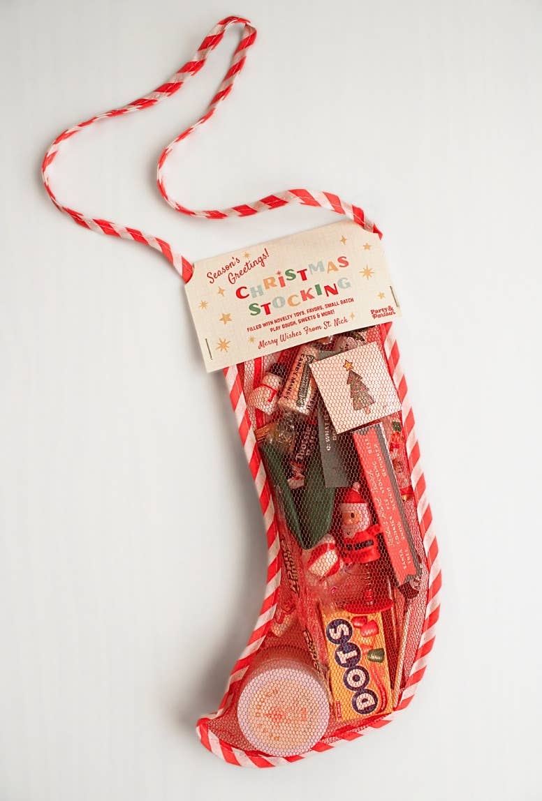 Retro Red Mesh Surprise Christmas Stocking Pre Filled