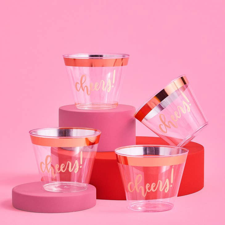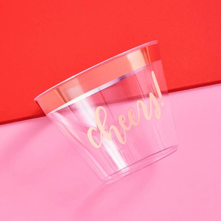 The easiest part of the party. || Cheers, babe! Whether you’re toasting to the Bride, the bday girl, or to Friday - there’s nothing that says it better than our “Cheers!” cups. Pressed with rose gold foil, these cups are perfect for setting the vibe at any occasion. Fits 9oz of your favorite bev! Quantity: 25disposable cups